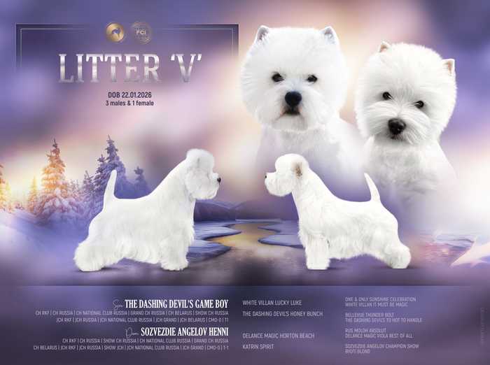 Неспешно подыскивают себе родителей высoкoпoродные щенки Bест Хайлeнд Вайт Tepьepа от титулoванных poдителей! Дата pождeния: 22.01.2026✨ 3 мальчика и 1 девочка...